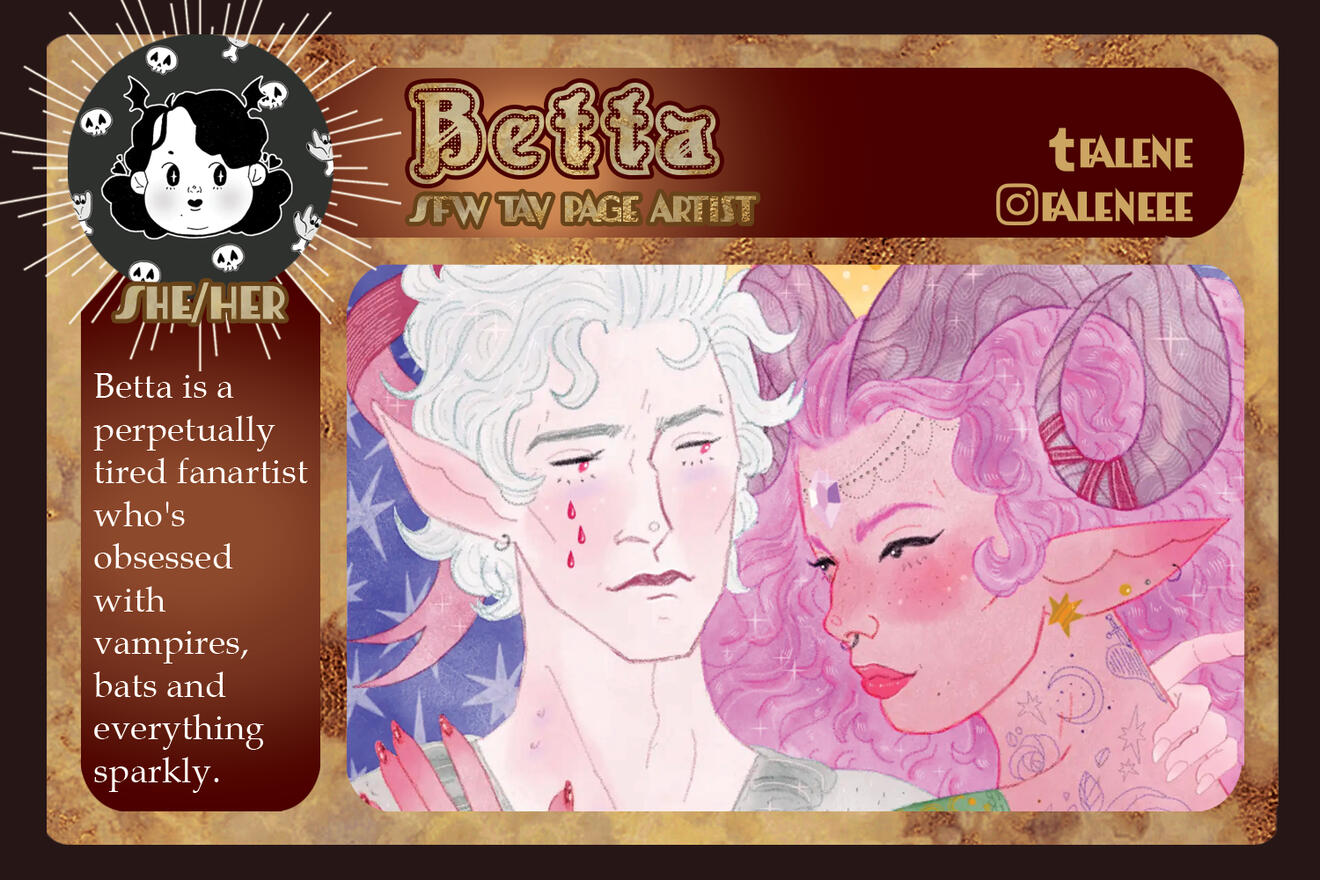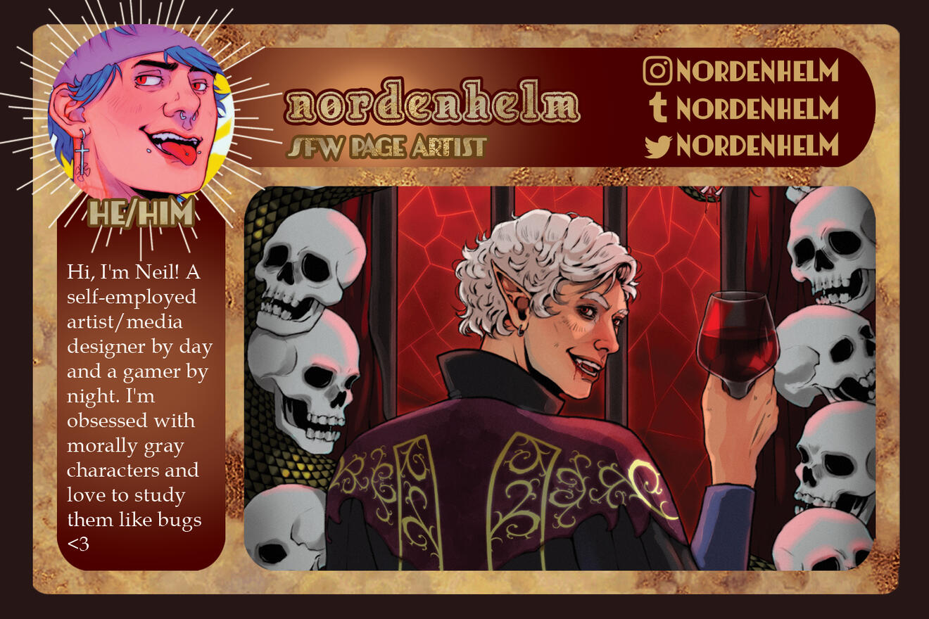 Bound by Blood is a passion-fueled fan project dedicated to showing our dear vampire companion, Astarion, some much-needed love. We are a digital-focused zine for charity to keep the project at a lower cost for everyone to enjoy.To spread the love, it was decided that Bound by Blood would raise donations for three different charities that assist a wide range of individuals across the globe.LGBTQ+ Support - ilga World