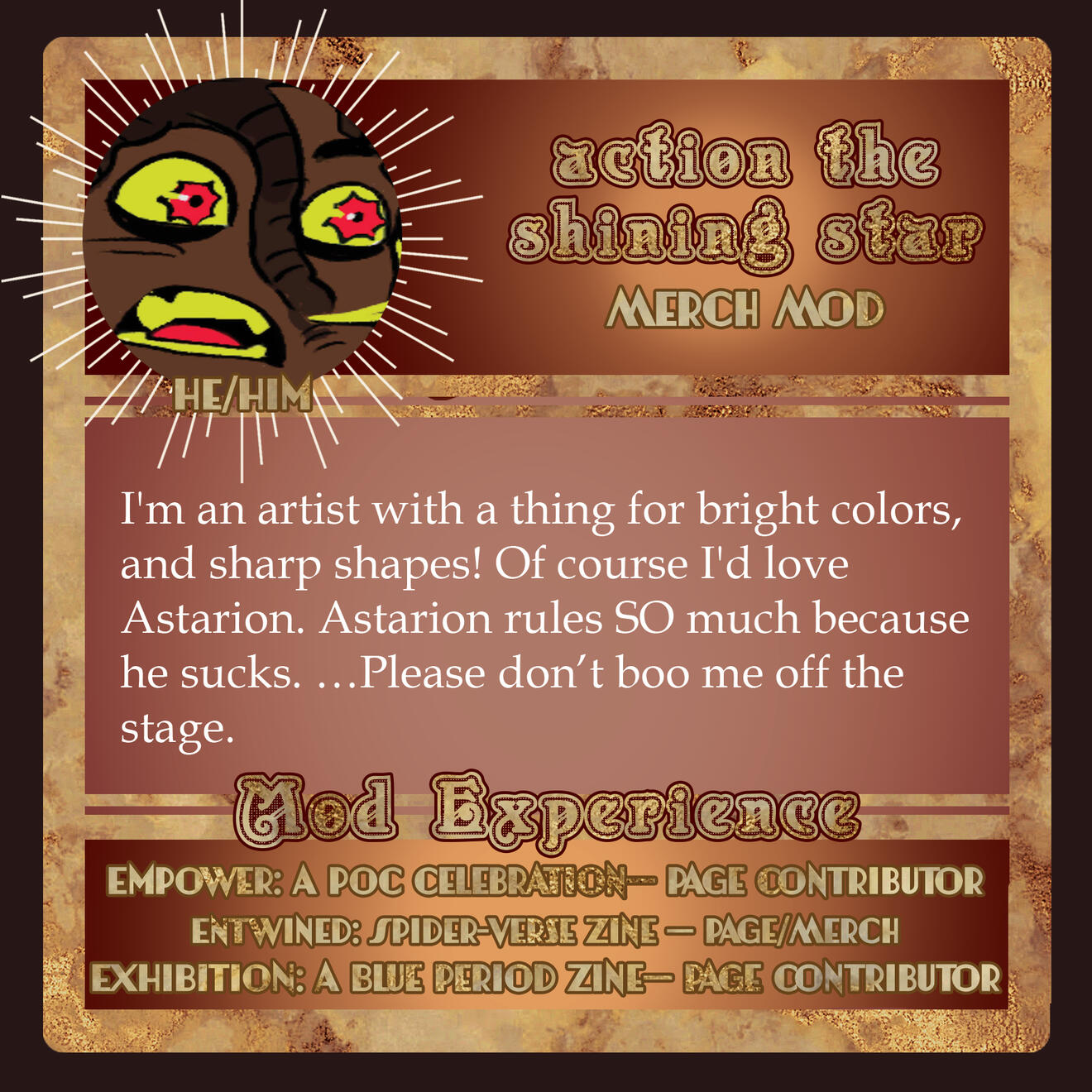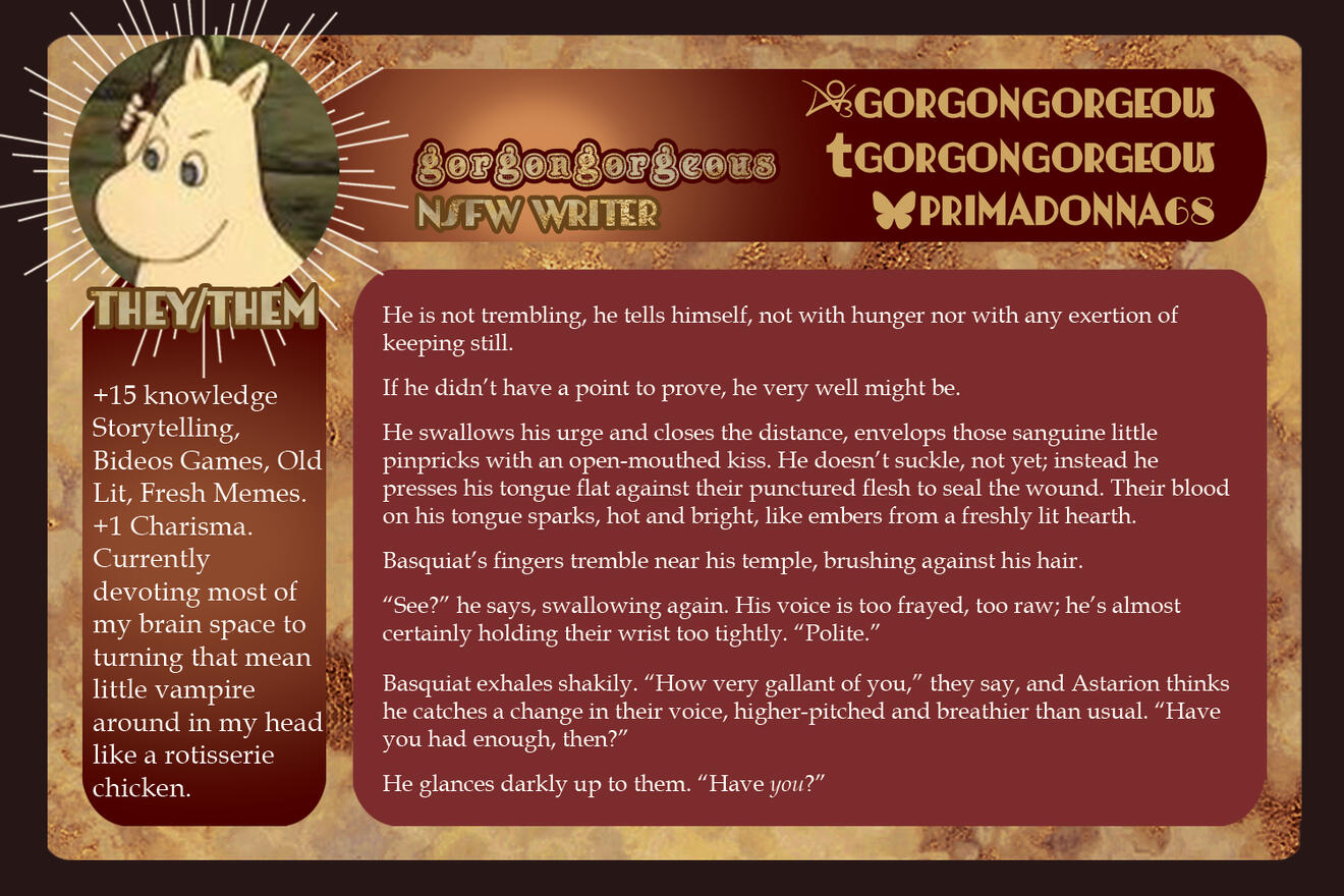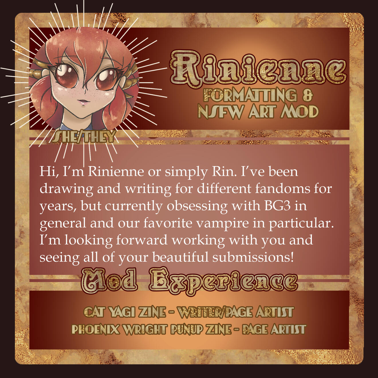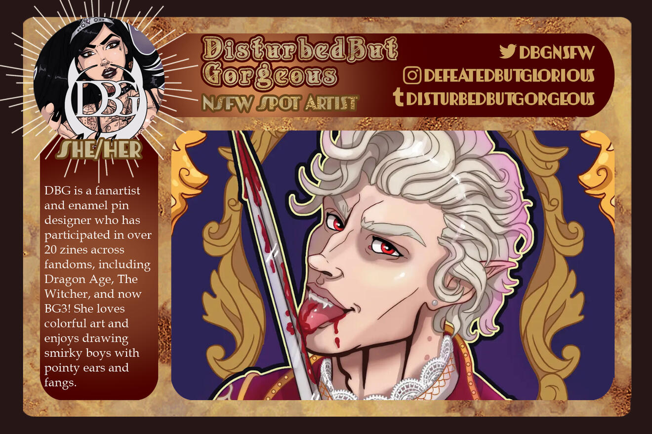 Those involved in the project are free to remain anonymous in the zine itself for their own reasoning and comfort. If you are in need of this extra support for your mental health, boundaries, and comfort, please let us know in the application, so we can accommodate you.Will this be an Astarion solo zine or will the content be Astarion ships? If yes to the latter, will these include Tav/OCs?
