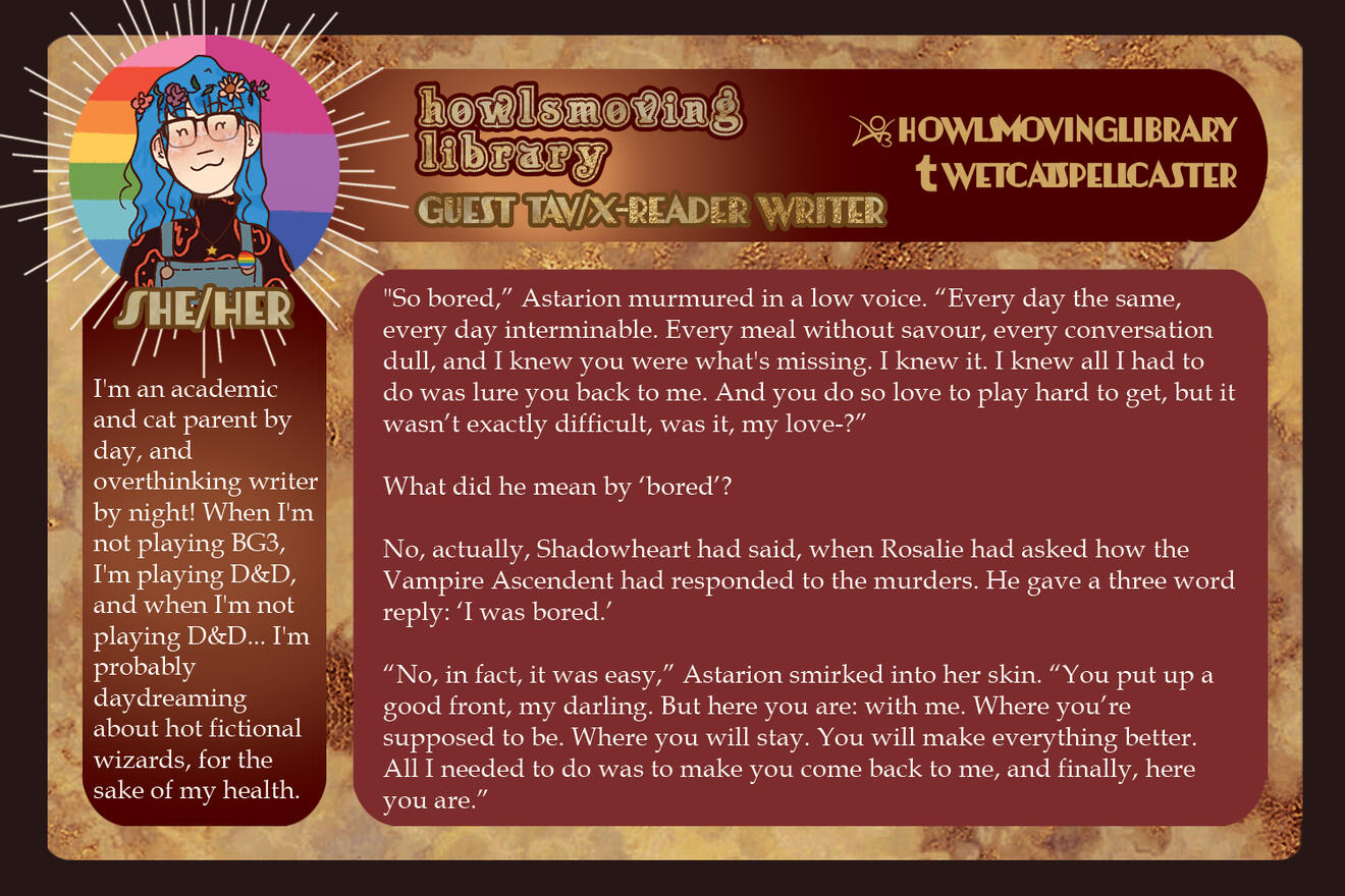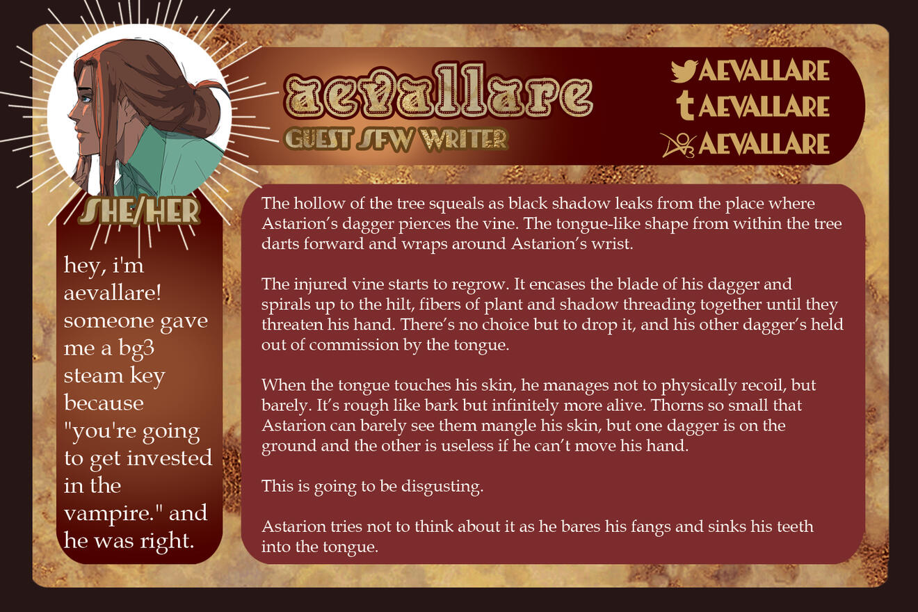 Tav/OC and ship content is encouraged, especially if Astarion is involved.