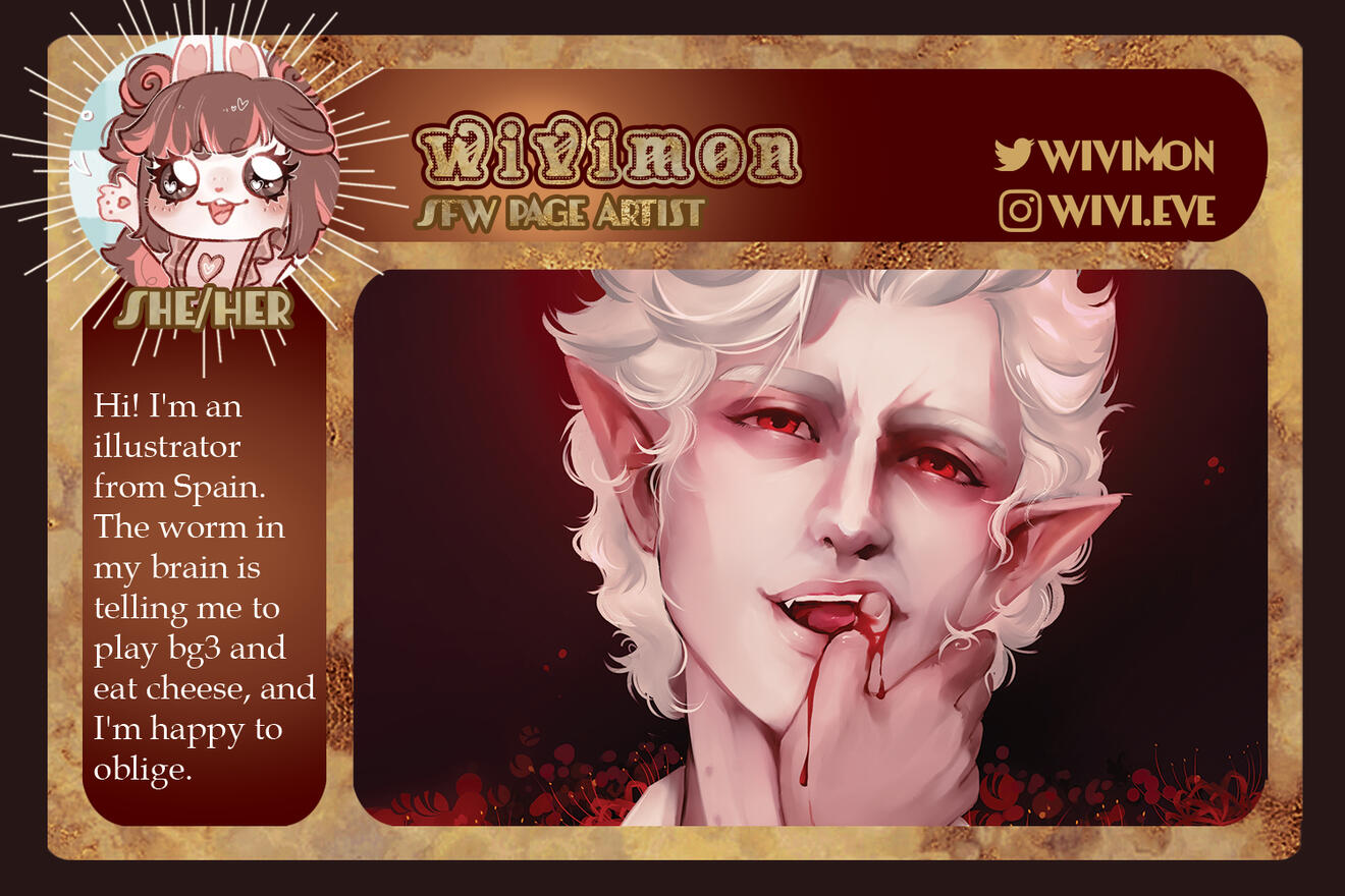 Bound by Blood is a passion-fueled fan project dedicated to showing our dear vampire companion, Astarion, some much-needed love. We are a digital-focused zine for charity to keep the project at a lower cost for everyone to enjoy.To spread the love, it was decided that Bound by Blood would raise donations for three different charities that assist a wide range of individuals across the globe.LGBTQ+ Support - ilga World